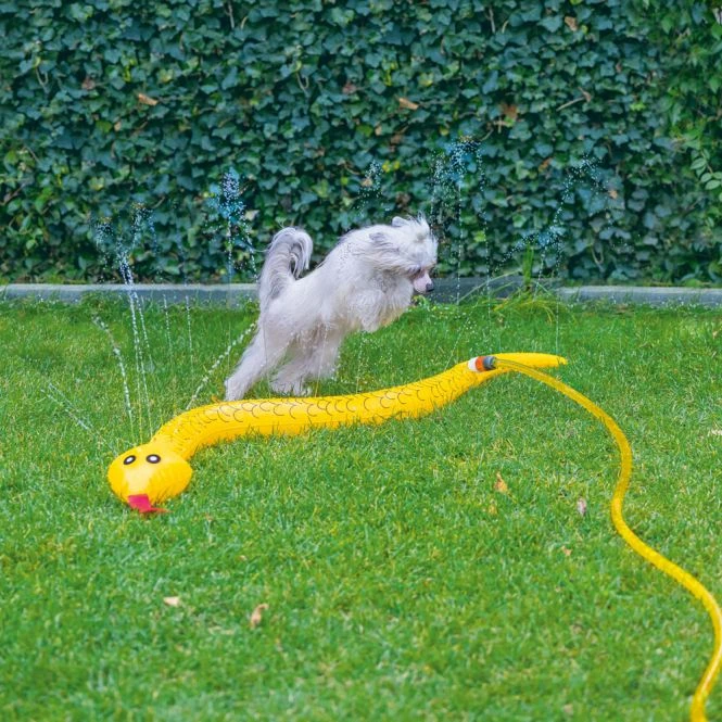 Bieten Sie Ihrem Hund beim Spielen mit dem Beeztees Hundespielzeug Splashy Schlange eine wunderbare Abkühlung. Die Splashy Schlange aus PVC kann mit dem mitgelieferten Kupplungsstück an den Gartenschlauch angeschlossen werden. Wenn Sie den Schlauch langsam mit Wasser füllen und dann den Wasserhahn weiter öffnen, entstehen viele Wasserfontänen. Denn der Schlangenkörper besitzt viele kleine Löcher, aus denen das Wasser herausspritzt. Ihr Hund liebt Wasser? Dann kann er es genießen, durch die Düsen zu laufen oder Wasser zu trinken. So bekommt er beim Spielen eine wunderbare Abkühlung.