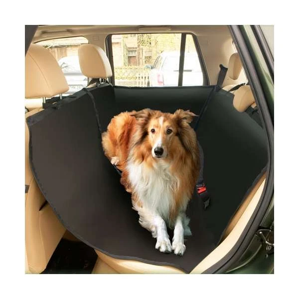 Diese spezielle Schondecke für die Autorückbank schützt teure Autopolster und -bezüge vor hartnäckigen Tierhaaren, Schmutz und Dreck. Sie lässt sich schnell und einfach an den Kopfstützen anbringen. Mit Hilfe von Reißverschlüssen können zusätzlich zwei Seitenschutzteile eingesetzt werden, so dass durch diese Wannenform auch die Türinnenverkleidungen geschützt sind. Die Decke ist durch einen Reißverschluss teilbar, so dass man auch nur die Hälte der Sitzbank bedecken kann und die andere Hälfte normal genutzt werden kann. Eine Gurtschlossdurchführung lässt ein einfaches Anschnallen von Mensch und Hund zu. Das Nylonmaterial der Decke ist stabil, Wasser abweisend und abwaschbar.