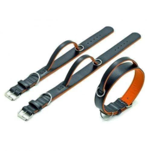 Für den großen Hund! Ein breites, mit cognacfarbigem Softleder unterfüttertes Halsband. Durch die eingearbeitete Handschlaufe haben Sie Ihren Hund direkt unter Kontrolle. Natürlich ist auch der Einsatz eines Kurzführers oder einer Leine möglich. Das super weiche, schwarze Vollrindleder ist handwerklich vernäht und durch den Einsatz stabiler, verchromter Beschläge hat dieses Luxushalsband eine lange Lebensdauer. Made in Germany. Aus der Rondo-Linie gibt es zahlreiche passende Leinen und Kurzführer.