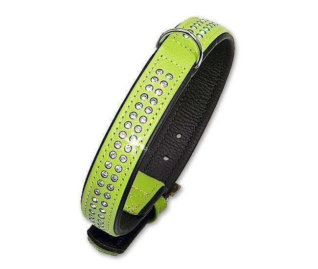 Das Halsband ist aus weichem Feinleder in bester Verarbeitungsqualität gefertigt. Der Strassbesatz ist sicher zwischen den Lagen des Leders eingenäht. Die Steine bestechen durch ihre glasreine Qualität und das feurige Funkeln im Wechselspiel des Lichtes.