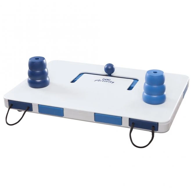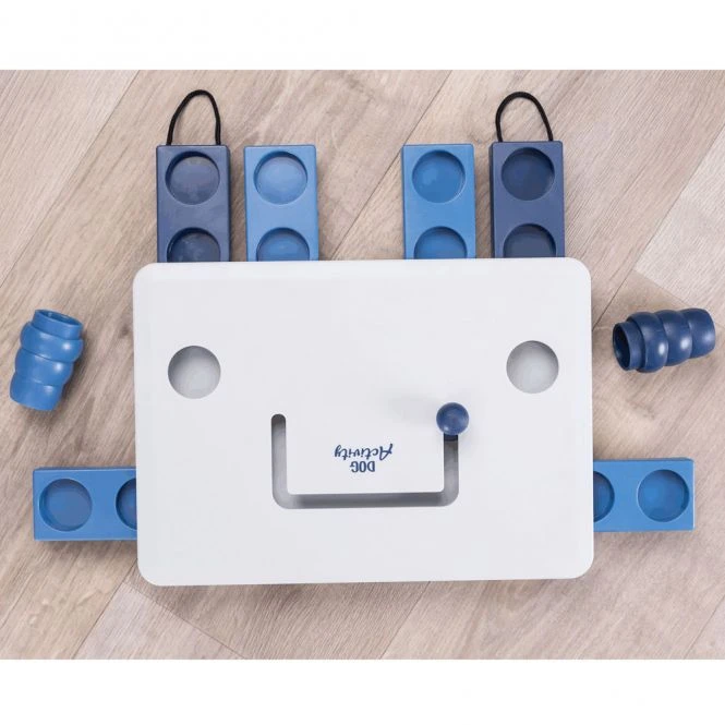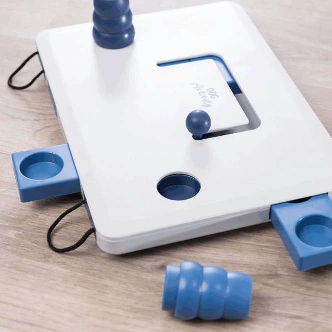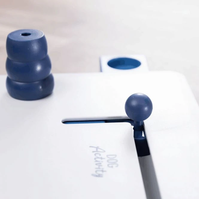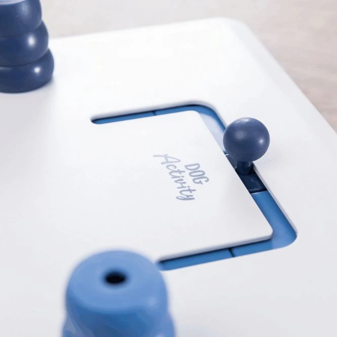 Move2Win ist ein Brettspiel mit verschiedenen Schubfächern. Dort werden kleine Leckerlis versteckt, die Ihr Hund versucht aufzuspüren. Nach einer gewissen Übungszeit gelingt es ihm, die Schubfächer mithilfe der Schlaufen oder durch verschieben des Stempels zu öffnen und so an seine Belohnung zu gelangen. Durch zwei Kegel kann die Schwierigkeitsstufe erhöt werde, indem sie als Stopper genutzt werden.