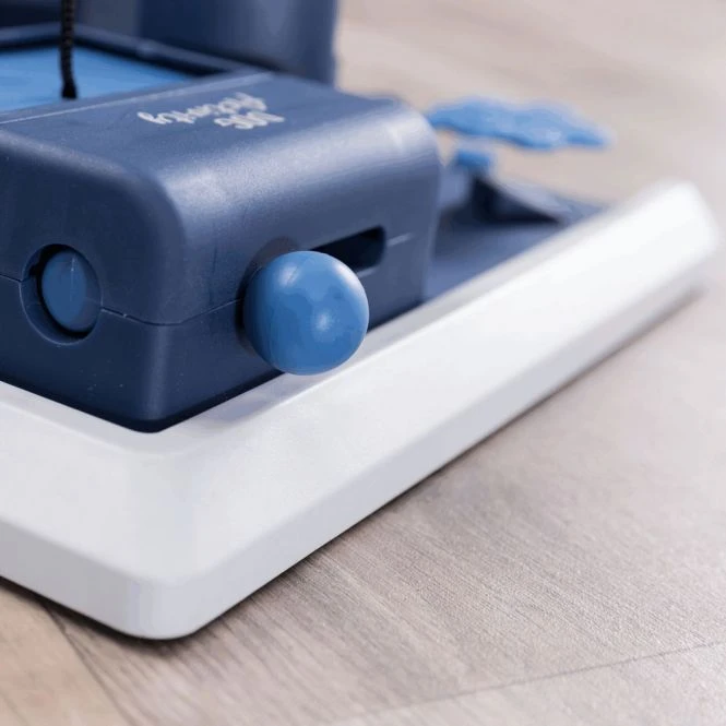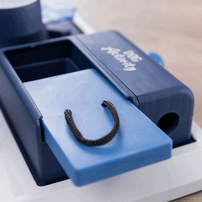 Die Poker Box 2 (ist ein besonderes Spielzeug, das Spaß und Strategie miteinander verbindet. In die Spielbox sind vier Fächer eingearbeitet, die sich auf unterschiedliche Arten öffnen lassen. In diesen werden Leckerlies versteckt, die Ihr Hund versucht aufzuspüren. Mit ein bisschen Übung gelingt es ihm, die Fächer mit den Schlaufen oder dem Hebel zu öffnen, oder mit Hilfe des Kickers oder dem Pedal an das Leckerlie heranzukommen.